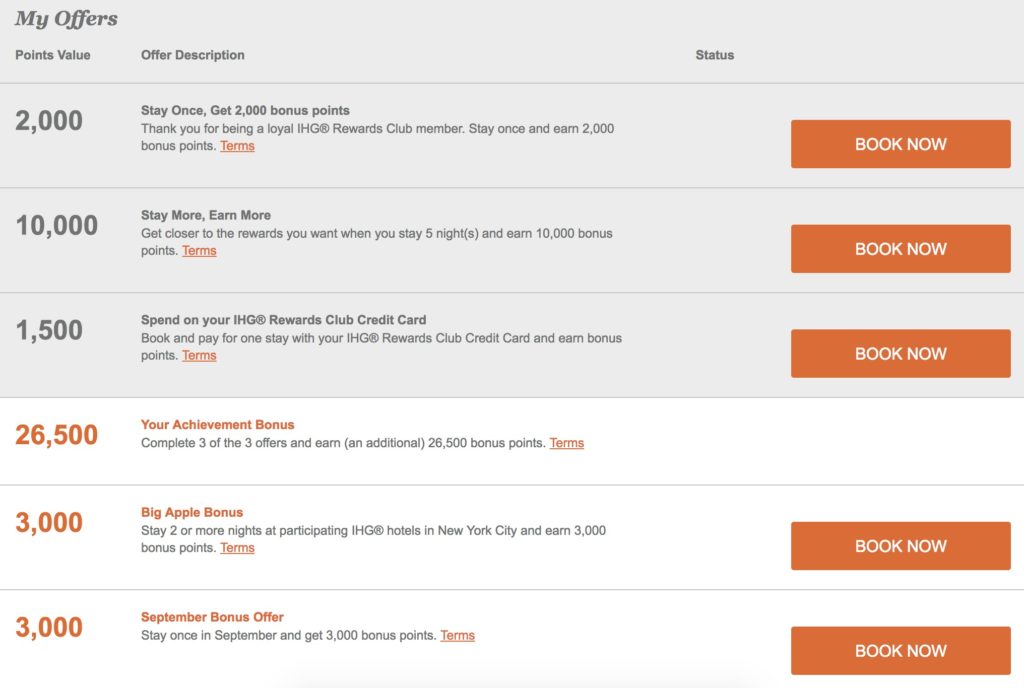 My wife had the exact same offer, and I realized that I could get 6,500 bonus points with one stay in September, but I figured it wasn’t really worth it for 4 more nights to get the remaining bonus nights. If I had upcoming stays where I needed a hotel that would be one thing but I don’t think mattress running this makes sense. If I needed more IHG points (which I don’t), I could buy 35,000 points whenever I wanted for 0.7 cents a point or cheaper! ($245) which would likely be cheaper than 4 mattress runs.