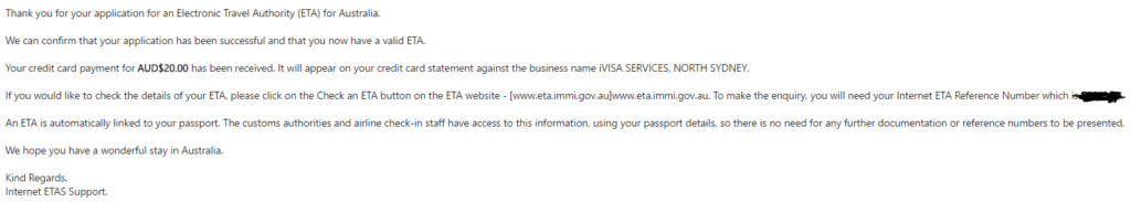 After applying, I quickly received an email stating that my application was successful and I had a valid ETA. It seemed so easy I began to question if that was all I really needed to do.