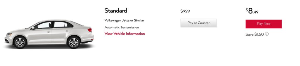 The Avis promo site has a list of participating cities / airports but it looked pretty extensive. You don’t need a discount code to book this – in my experience it showed up just fine. Here’s an example for a standard car, though as we all know, you’re FOOLISH to rent a standard car