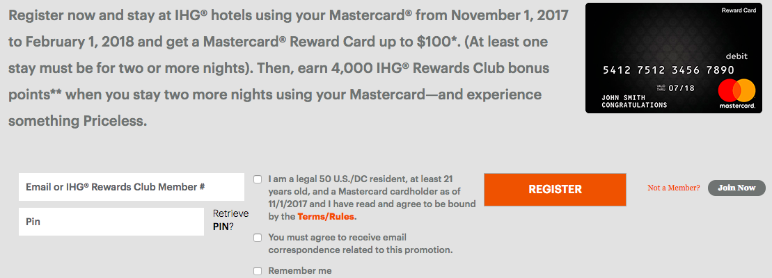 Once you complete the Rewards Card off above, you can earn even more through this promotion in the form of IHG Rewards points. If you stay an additional two nights at an IHG property, book direct, and pay with a Mastercard (any Mastercard!), you’ll be eligible for 4,000 IHG Rewards points. That’s 80% of the way to a night in a Points Break promotion hotel, not too shabby!