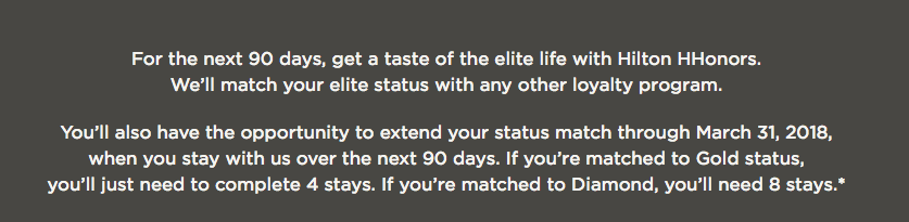 However as Loyalty Lobby reports, if you complete the required stays (not nights) within 90 days, your Hilton elite status will be extended through March 2019! That is two years of elite status at Hilton!