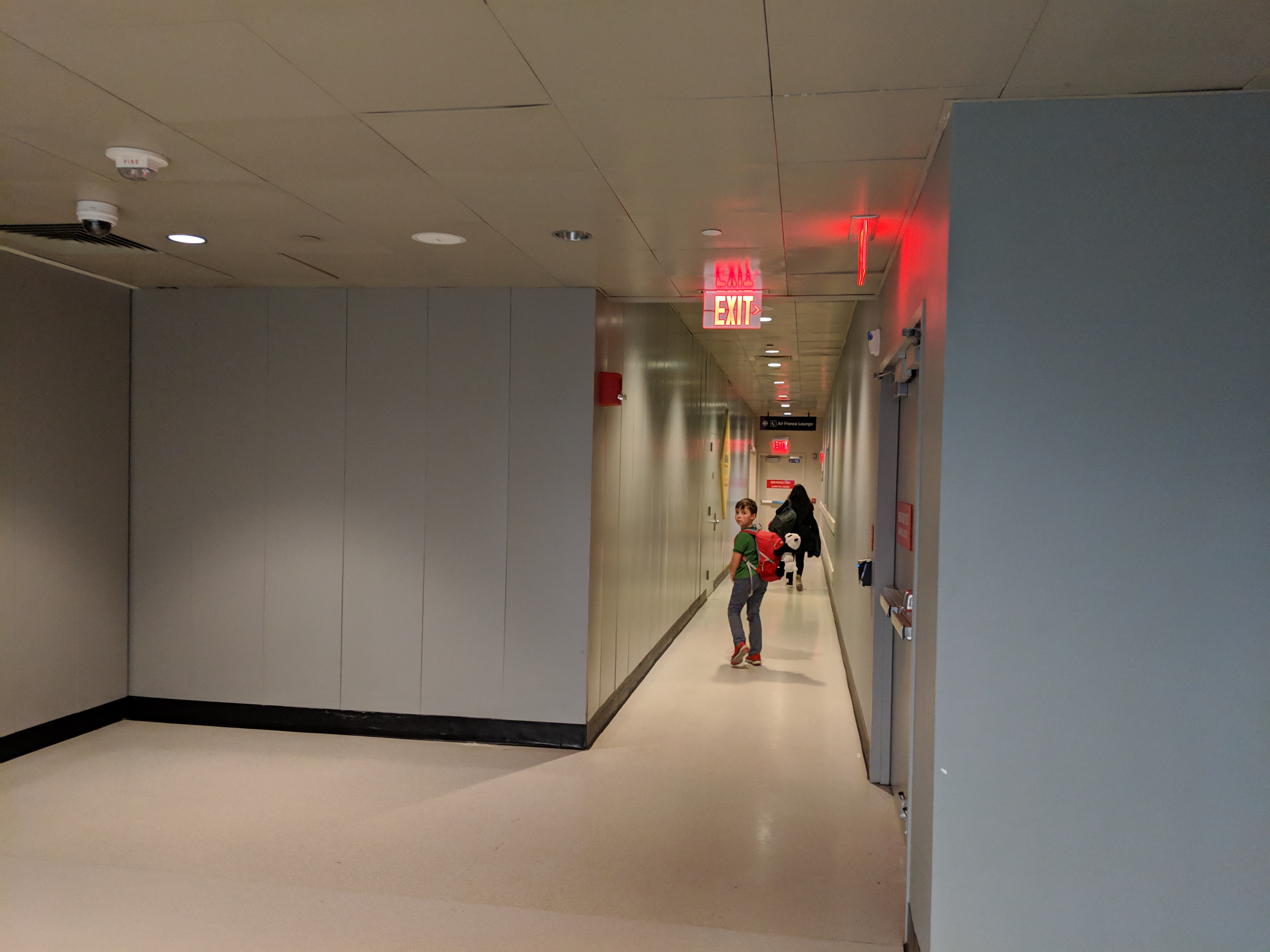 The Air France lounge is located near Gate 4 in Terminal E. You’ll need to take the stairs or take the elevator to the lower level, and then follow the (slightly creepy/empty) hallway down to the end.