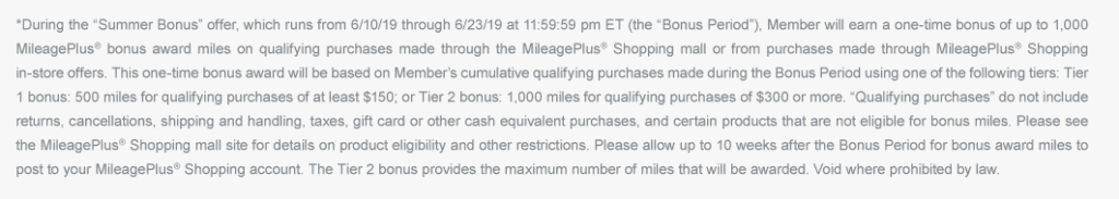 Well, looks like United heard me! (Or maybe I just missed the email from United MileagePlus Shopping the first time.) Right now, earn up to 1,000 bonus United MileagePlus miles when using their shopping portal. You’ll need to make purchases through the portal before June 26th, so there’s not a whole lot of time to take advantage of this offer. The terms say you should allow 10 weeks for the bonus miles to post, but that hasn’t been my experience in the past. Usually it’s much faster.