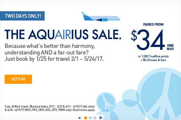 jetBlue is at is again, with flights for sale as low as $34. Where will you go for cheap? Act fast, as the sale ends tonight! You can see the current deals available by clicking here.