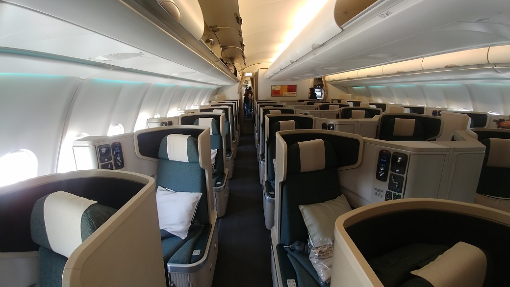 Cathay Pacific’s uses the A330-300 for medium haul flights in Asia, with 2 business class layouts. “Regional” business class is old angle-flat seats in a 2-2-2 layout, and this arrangement was initially present when I booked our flights. However, that plane was soon replaced by planes with the “international” business class layout A330-300s for the first 3 flights. Our final flight was a last minute product change to an A350, featuring the newest business class cabin. On both, business class is split between a larger main cabin consisting 7 rows in a 1-2-1 seating layout, and a smaller cabin behind it of 3 further rows.