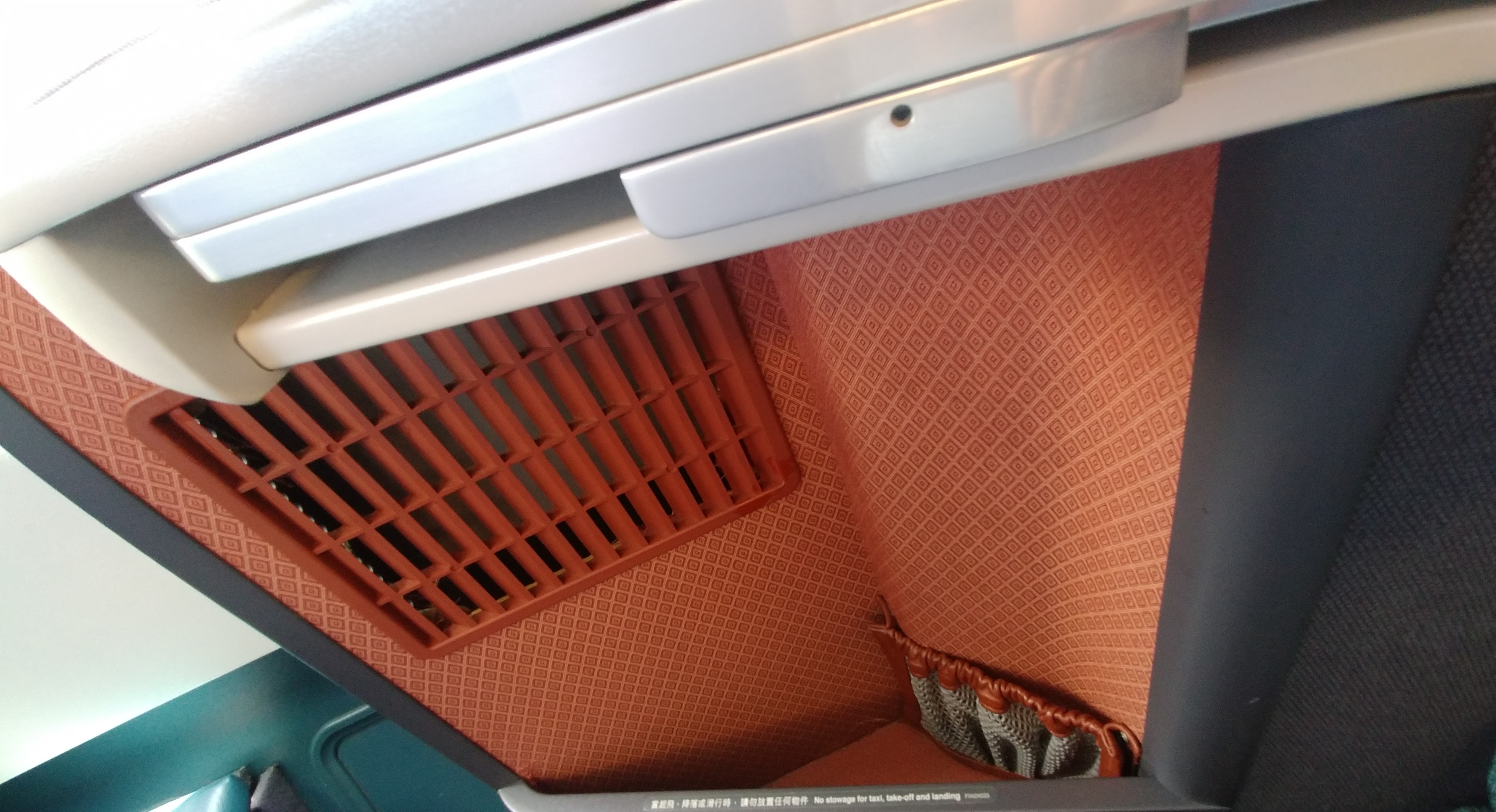 Seat storage felt slightly limited, with some room in the earphones bay, and 2 floor compartments. That limited feeling was mainly because the side compartment (beneath the table) isn’t usable during takeoff and landing. I had to hold my tablet in hand while taking pictures with my phone, a recipe for disaster. Fortunately I never dropped either device into the seat mechanism.