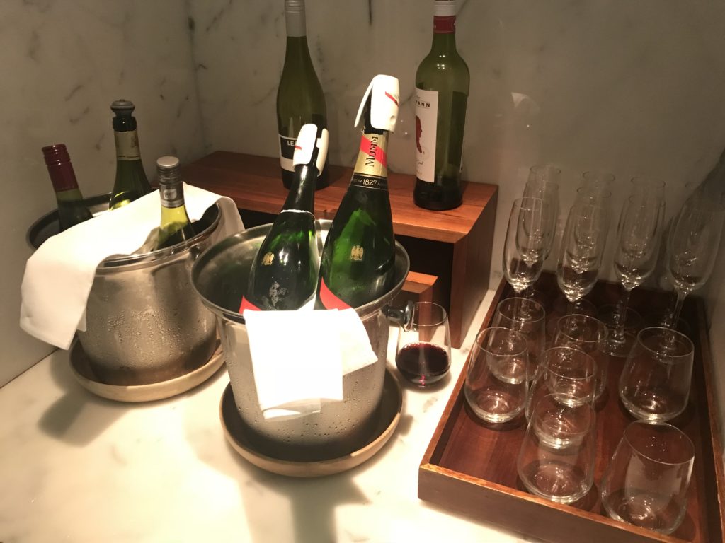 The wine in the downstairs section is self-serve and located in a small alcove along the hall near The Gallery, consisting of three red and three white options, and two different champagnes. I had one glass of Shiraz, plenty for our four-hour stay in the lounge.