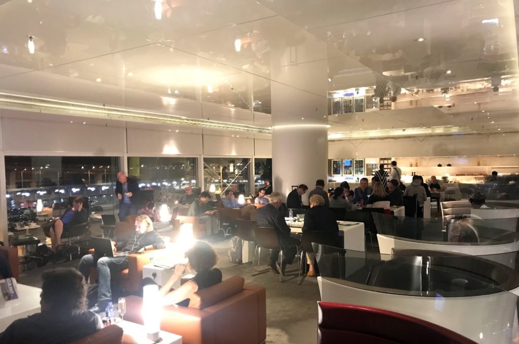 The Cathay Pacific The Wing Business Class Lounge really started to fill after our first hour there, around approximately 9:30 p.m. I was watching the monitors at one end of the lounge, and there were flight departures spaced evenly for much of the night, resulting in a pretty constant flow through the lounge while we were there. The departures screen is easily visible from much of the lower section of the lounge.