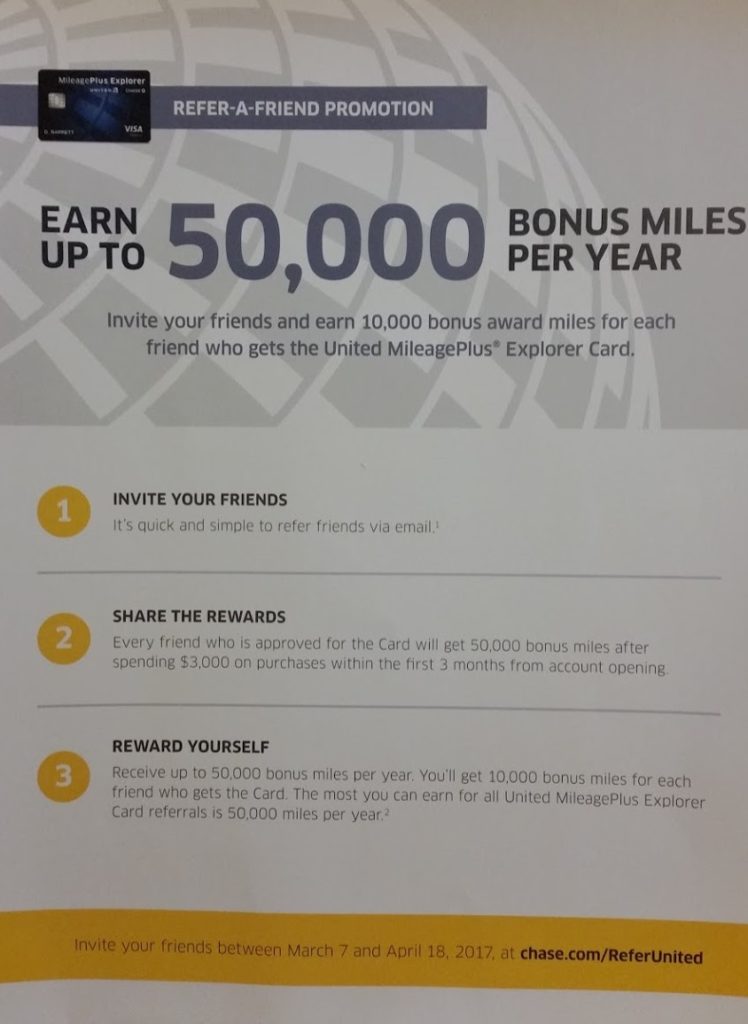 Many credit card issuers offer refer a friend bonuses for anyone that has the card to refer friends to sign up for the card.  American Express and Chase are the banks that offer the most refer a friend bonuses, and typically these American Express and Chase refer a friend bonuses come and go periodically.  It looks like the Chase United refer a friend program will be starting back up again in March 2017