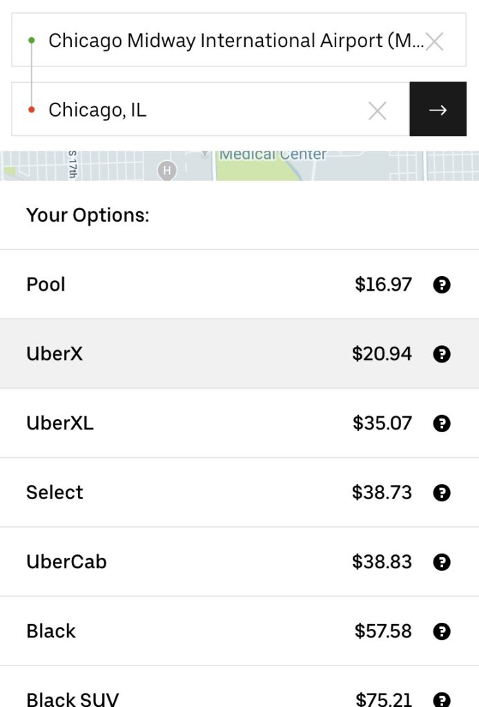 Midway Airport to Downtown Chicago by Uber or Lyft