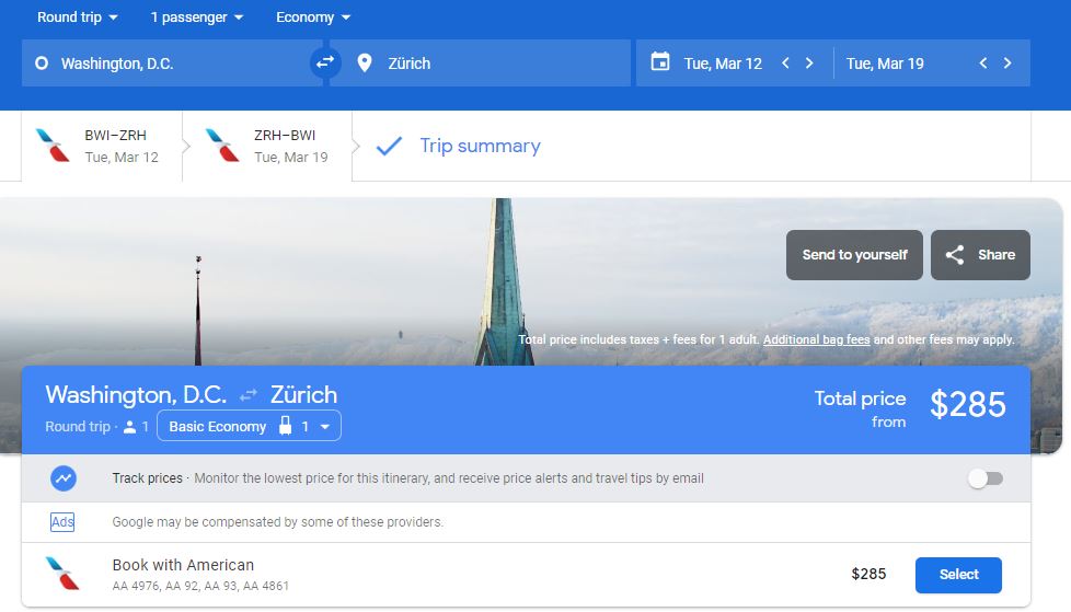 Baltimore to Zurich Screenshot 1 by Dan Miller | Jan 18, 2019 | 0 comments Newsletter SignupJoin the PWaC newsletter filled with credit card and travel tips Join Now! You have Successfully Subscribed! Submit a Comment Cancel replyYour email address will not be published. Required fields are marked *Comment * Name * Email * Website Δ