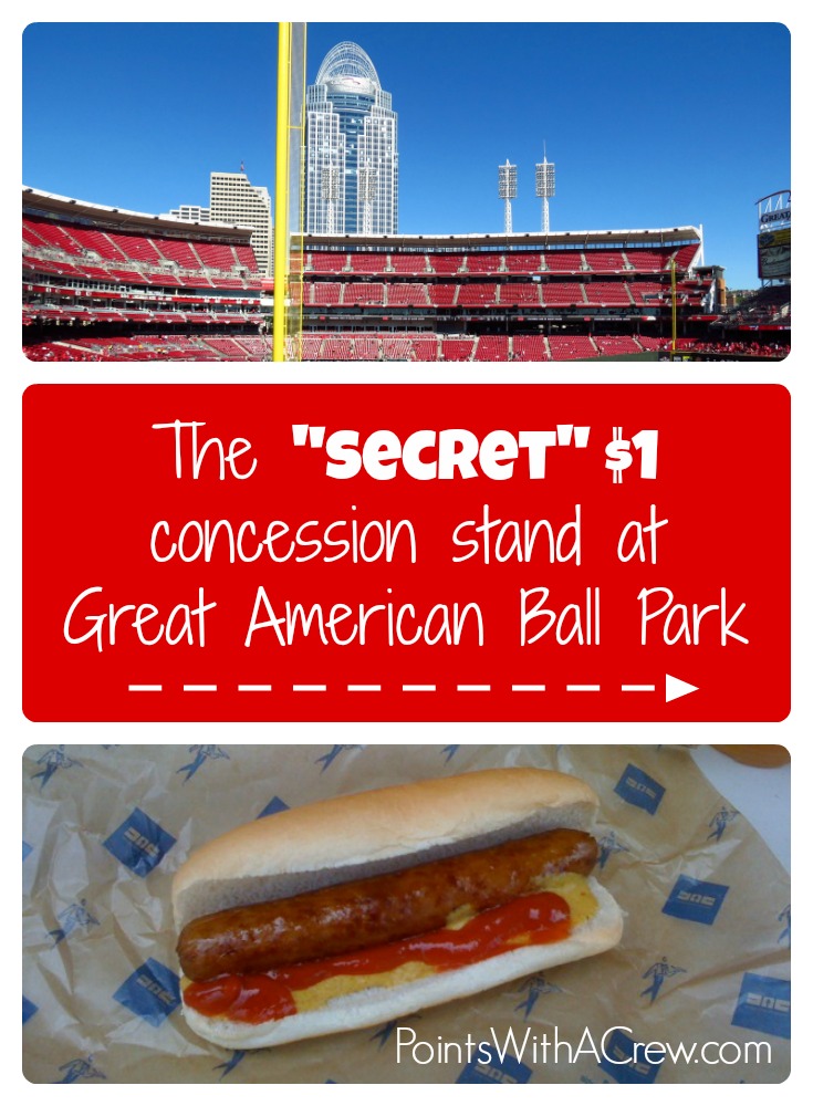 Now taking a family of 8 to a ballgame is fun, but how do you do it without breaking the bank? The MLB “Fan Cost Index” says that a family of 4, even to Cincinnati which is among the cheaper options, still “should” cost you $165.39. For general tips, the BallparkSavvy article I linked to above has some good ones, but I wanted to touch base on the secret $1 concession stand I found out about.