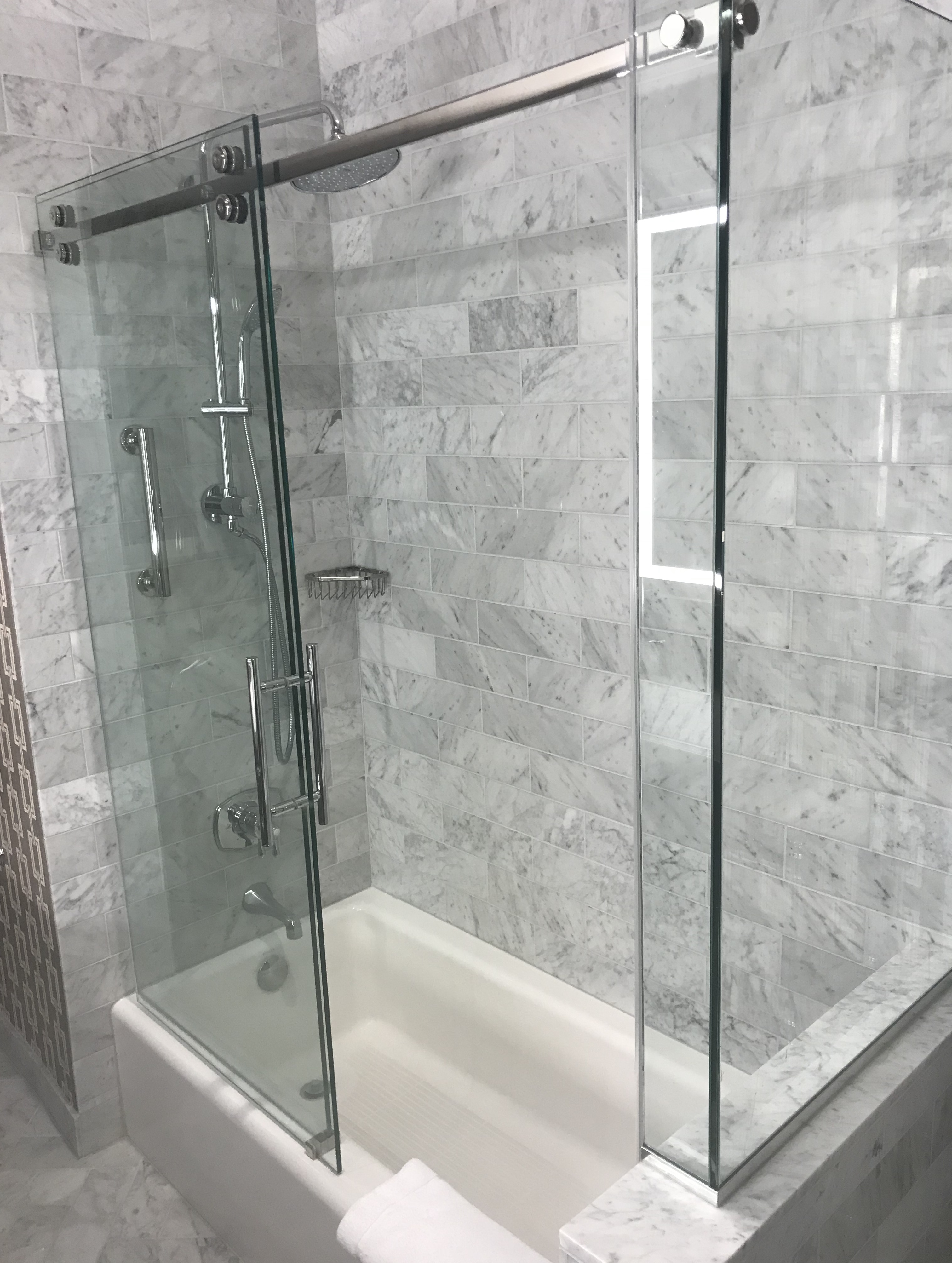 Even though the shower was glass and tile, it was still built over a tub. I’m not crazy about the design. I much prefer just a nice shower. If they add a separate tub, too, great.