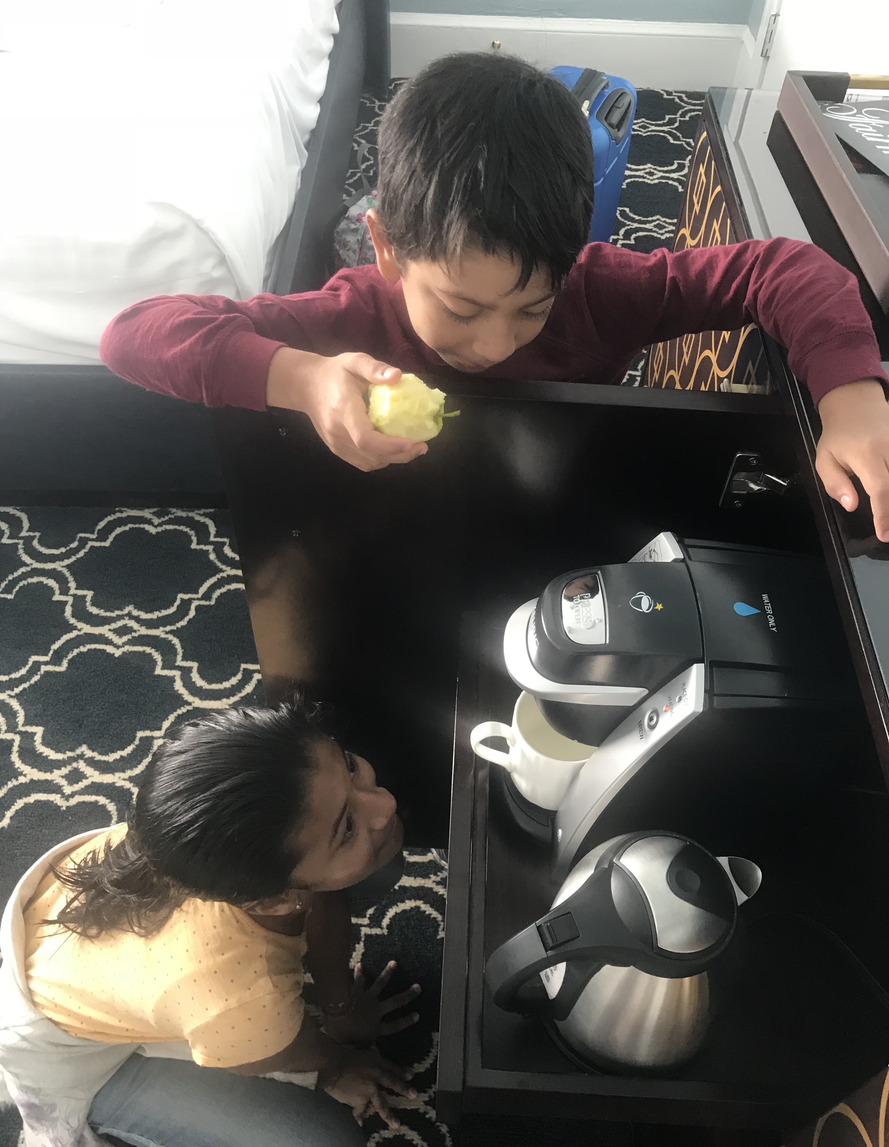 Due to work constraints, our trip was a quick one-nighter (yeah…I’m probably crazy). I picked up a couple donuts for breakfast, and the kids enjoyed those while I stuffed myself with the leftovers of our dinner. Breakfast was interrupted by the Keurig, something we don’t have in our house. Isn’t it amazing?