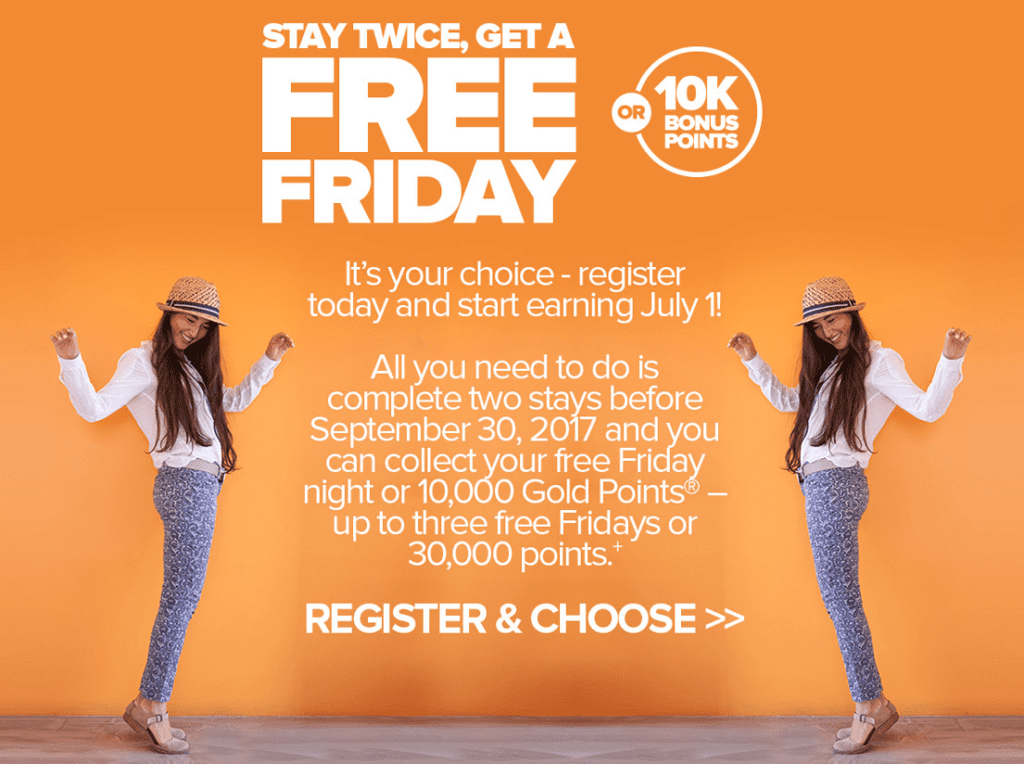 You can repeat this promotion up to 3 times, for a total of 30,000 bonus points or 3 free Friday nights.