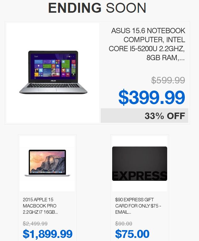 In the 2 days since I got the email, I have received no fewer than FOUR promotional emails urging me to hurry up and buy something on eBay.  I have reproduced some of them below