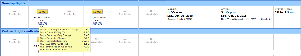 To use an example, here is the outbound segment of a flight from Newark (EWR) to Rome (FCO)