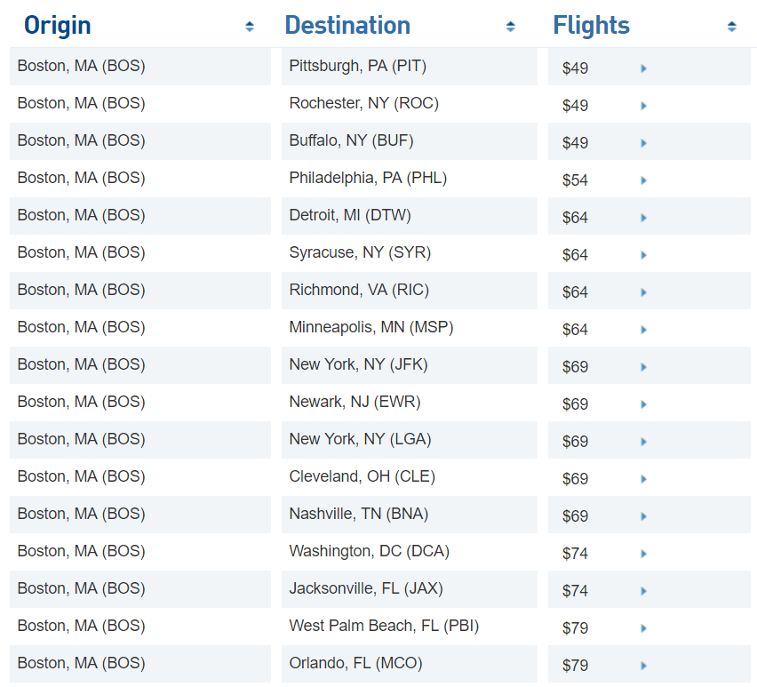 - Different or additional day of week restrictions, travel windows, and blackout dates may apply and vary by route. Click on a fare for details.