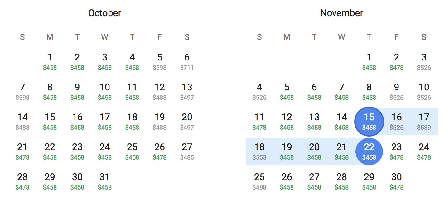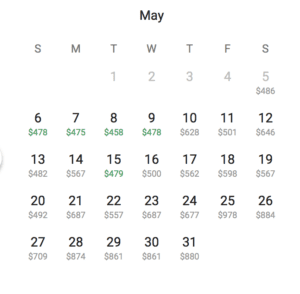 - Use Google Flights to check for available dates