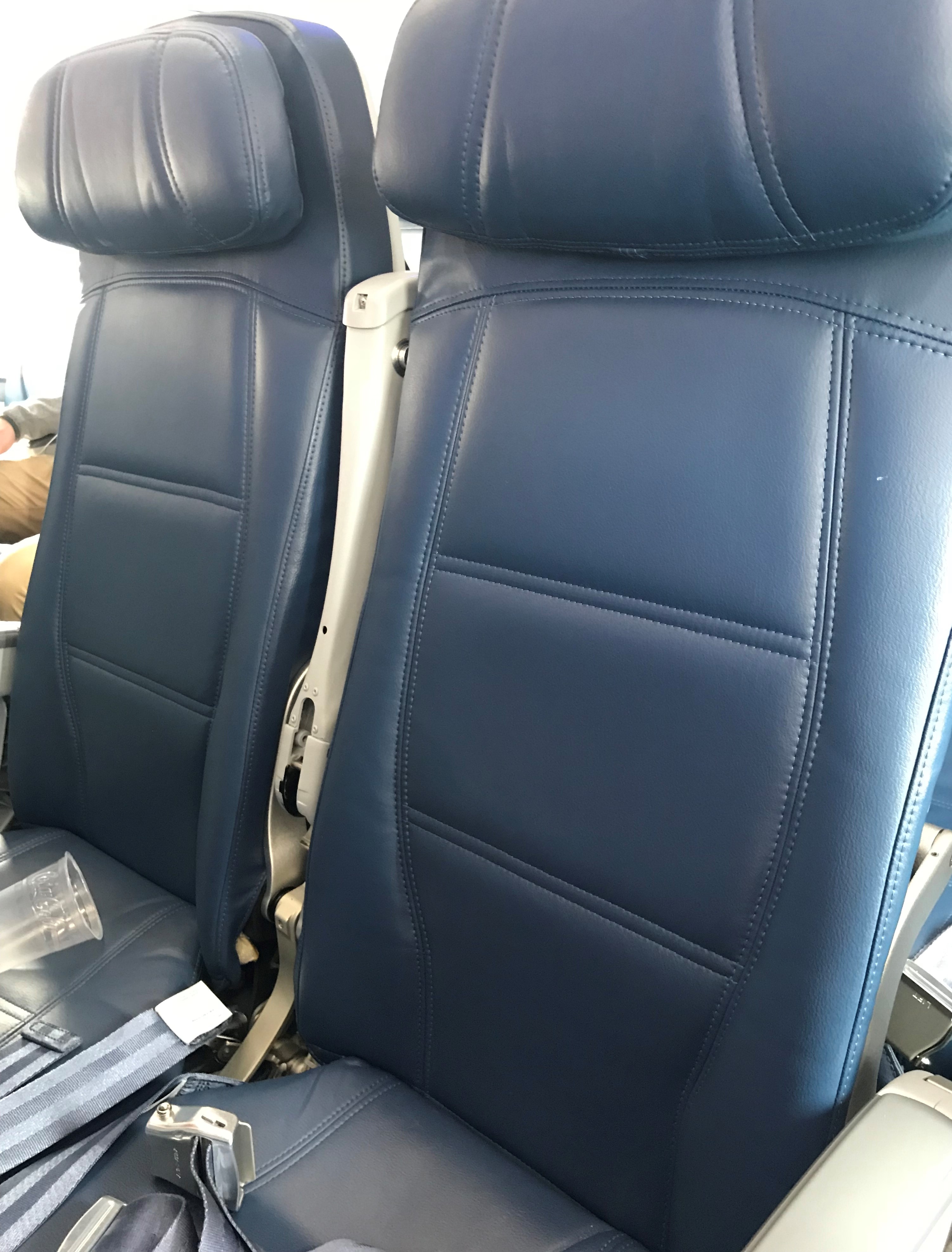 I was seated in 15C on this flight, on the aisle. I used to be strictly #TeamWindowSeat, but as I’ve flown more I’ve realized I do like to be able to get up and stretch. I also like to be able to drink a coffee and stay hydrated with water, not worrying that I’ll be bothering someone when I have to get up to use the lav on a cross-country. Generally, I’ll pick an aisle seat on a flight more than 2.5 hours and a window when the block time is less than that. Seats are a standard 17.2 inches wide, a hair narrower than those on Airbus aircraft.