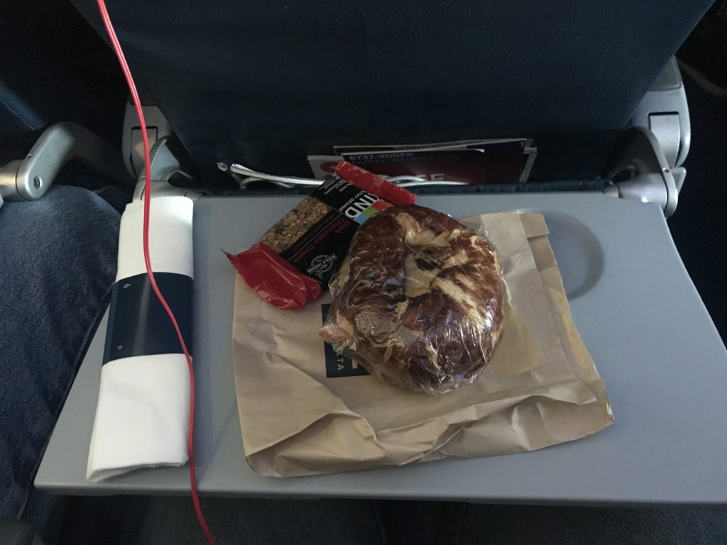 Service started fairly quickly with the snack and meal cart first. I’m always glad when Delta operates this way, as it is better than waiting for the entire snack and drink service to proceed before you can buy food. I still remember a nightmare United flight out of Chicago where it took over 2 hours for food to be served due to the way service was structured, plus an overly cautious captain that requested the crew stow the cart due to turbulence that never materialized. Twice. And my inbound that trip was, of course, very late, meaning that I couldn’t eat at O’Hare either.