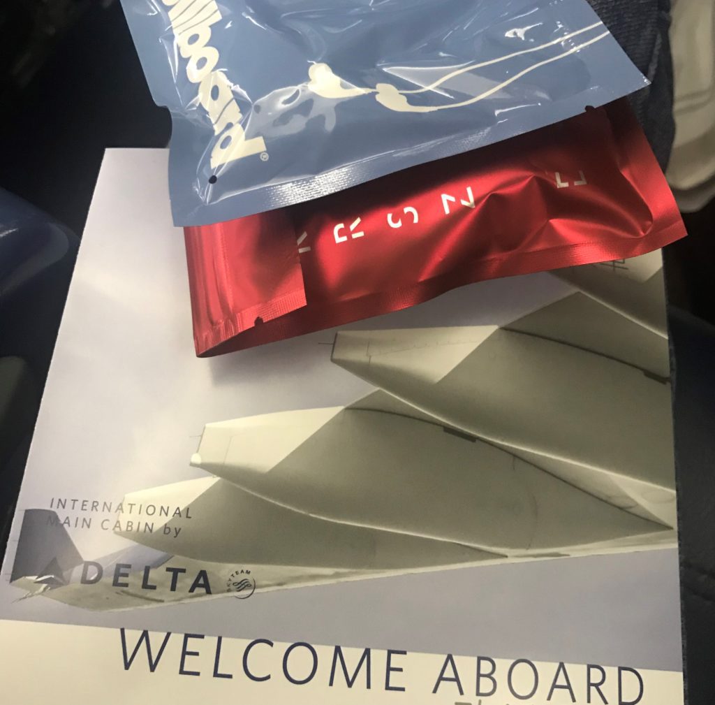 Drinks and snacks made it to us about an hour into the flight. The snacks were typical Delta cookies and pretzel/chip mix. My drink request was a glass of red wine. I didn’t catch which variety it was, but I found it “fruity” and thought it was good. For reference, the only time I have a glass of anything is either a) in a lounge before a flight, or b) on a plane.