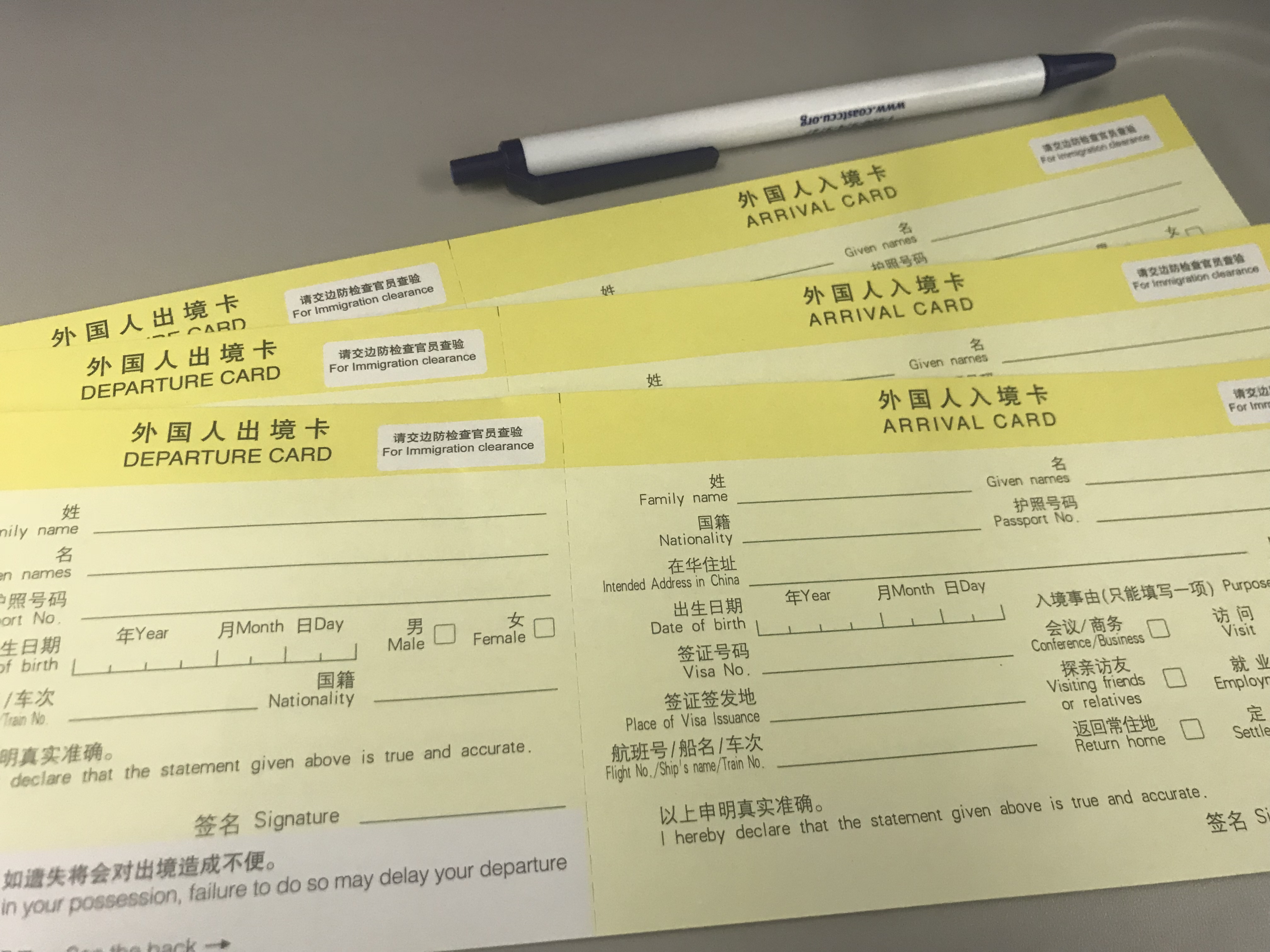 The flight attendants had handed out arrival cards at the beginning of the flight, but then made a second pass. I figured I’d better get these things filled out before we touch down (note: the TWOV card is actually different, which I’m pretty sure made these unnecessary for us).