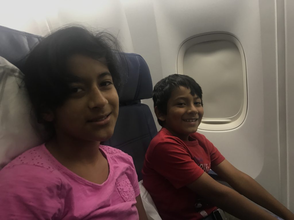 Ultimately, I found that the seating arrangement I’d chosen did make it hard to talk with the kids. I had to lean way out over the aisle, and sometimes was unaware of an approaching passenger or flight attendant. If I had to choose again, I would not pick this option, although my kids did enjoy having the window for takeoff and landing. Better would be booking a middle section of three seats in Delta 767 economy class.
