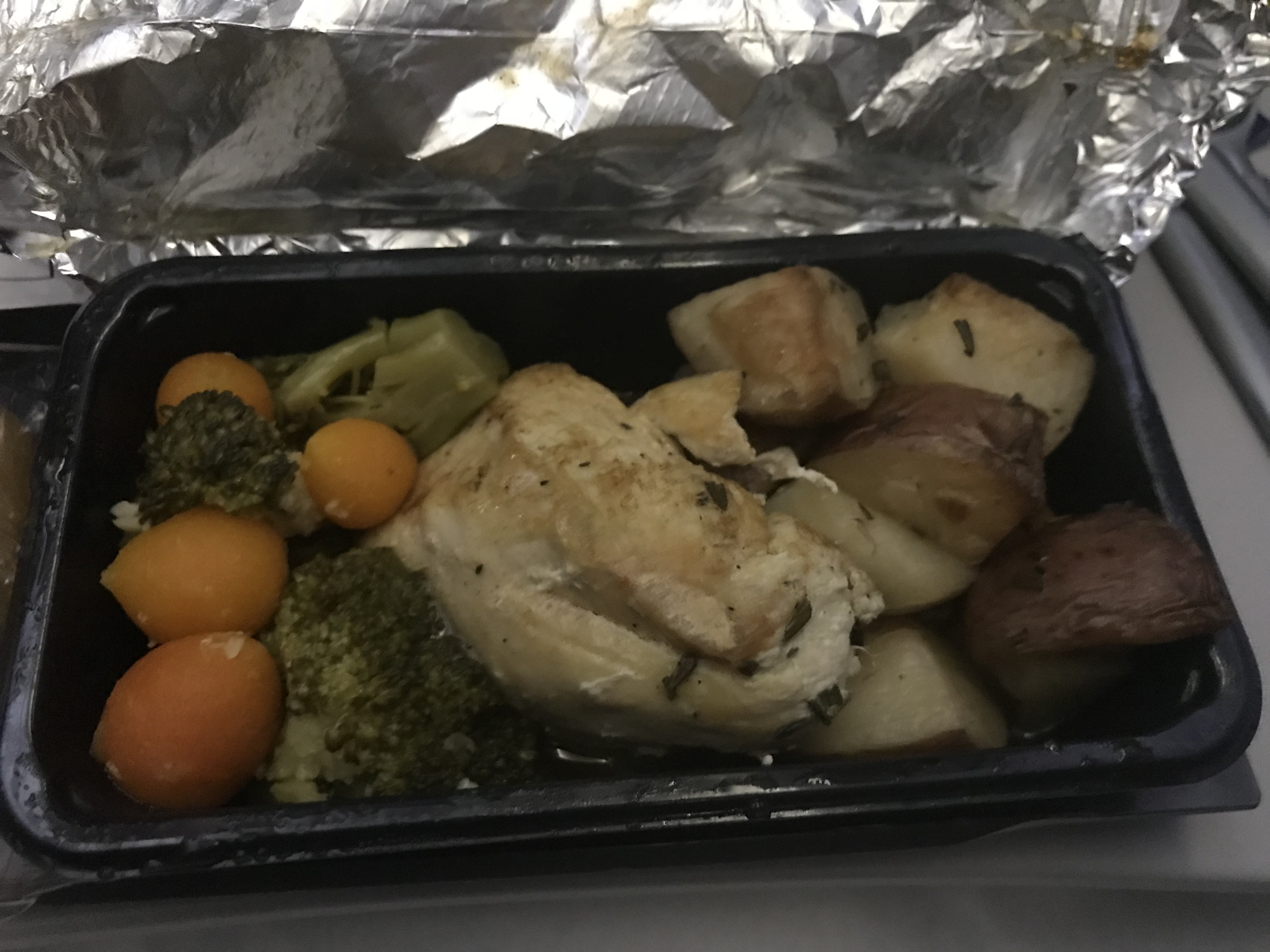 All of us went with the rosemary chicken option. My only experience with pasta on an airplane was rather disgusting, and I wasn’t feeling adventurous.
