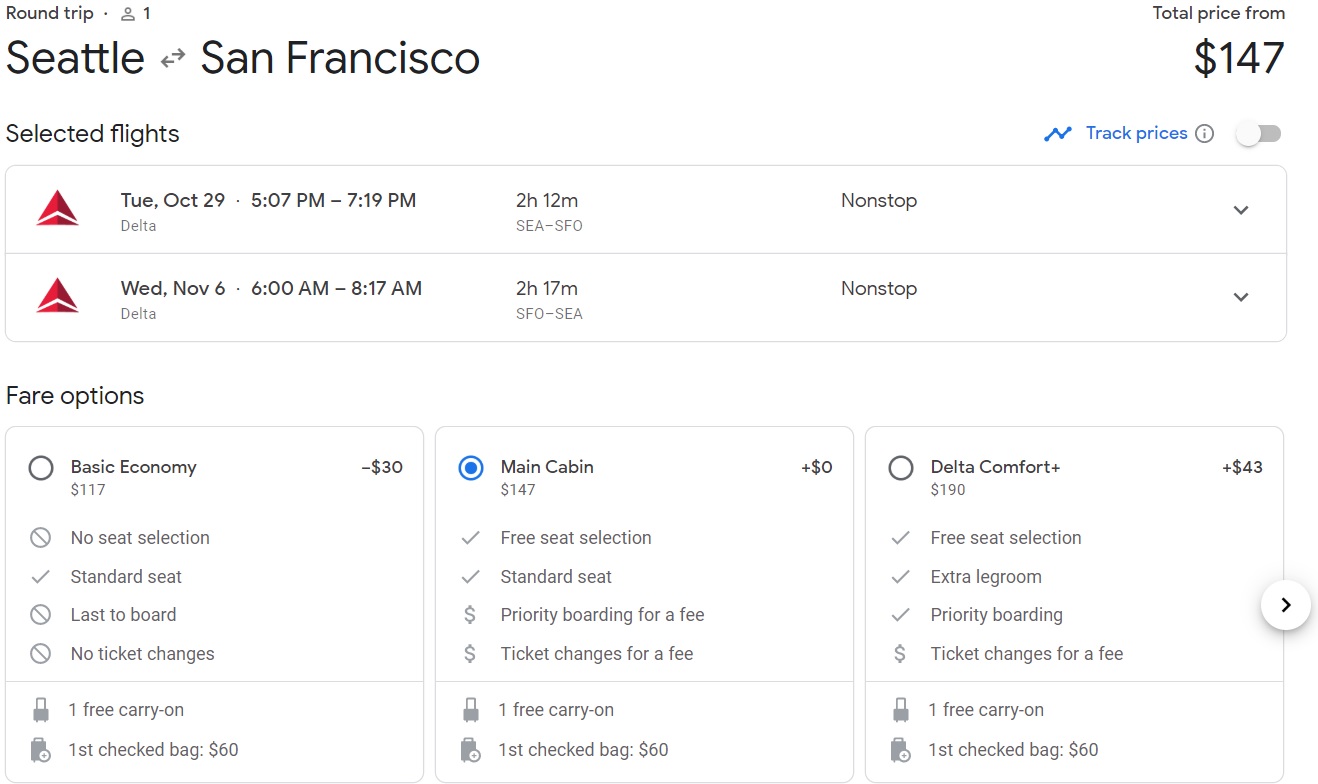 Delta’s non-stops are about $150 in main cabin. So it’s definitely not a bad deal, but it’s not necessarily thrilling. Then again any deal that gets you where you need to go can be a good one.