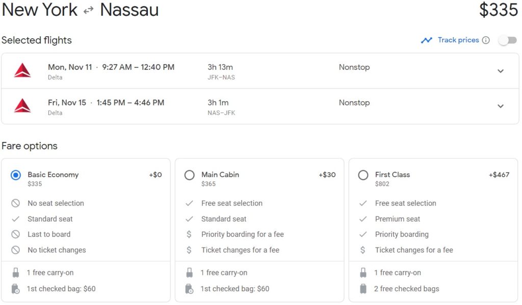 These are main cabin deals, so seat selection and a carry-on are included, though checked bags are not. Taxes and fees are also added on top; these are listed right on Delta’s page, so make sure to consider those when choosing a fare.
