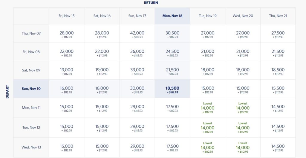 There are about 30 deals here, and as usual the flight windows are roughly a week long, with some added discounts outside the official window. For instance, New York to Nassau is listed as 15,500 miles, but flights from 14K are available.