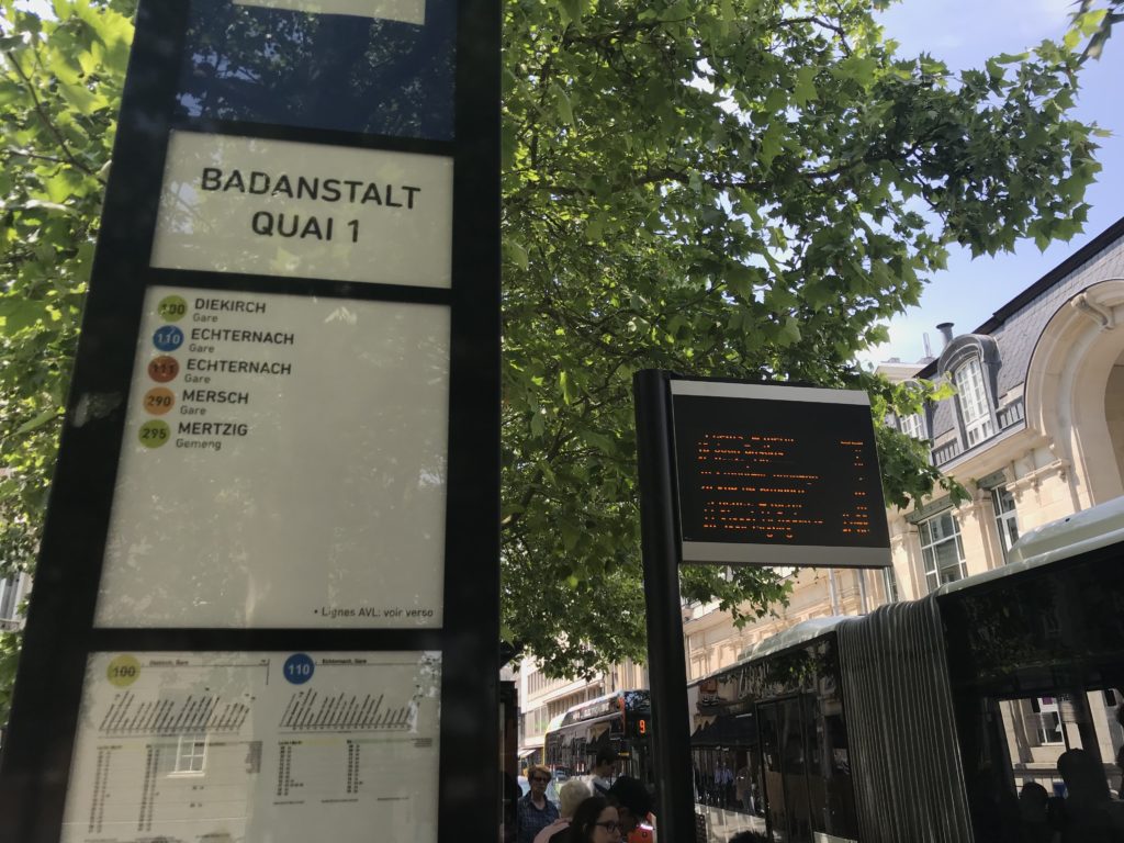 Most stations also have electronic screens showing when the next buses will arrive. The transfer station is called Badanstalt. When taking the bus back to the center of Luxembourg, this is the stop you generally want. It is the easiest access to the middle of town. You can walk to the Museum, Palace of the Grand Duke, and the Grund from here.