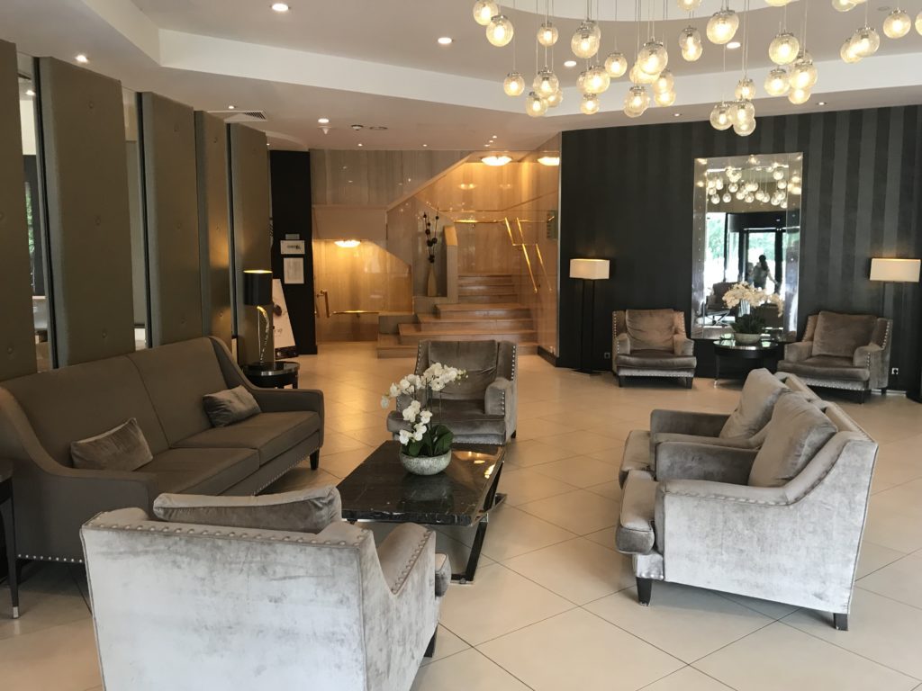 The lobby of the DoubleTree Luxembourg is fairly small, but nice. The A/C was wonderful since we were dripping sweat.