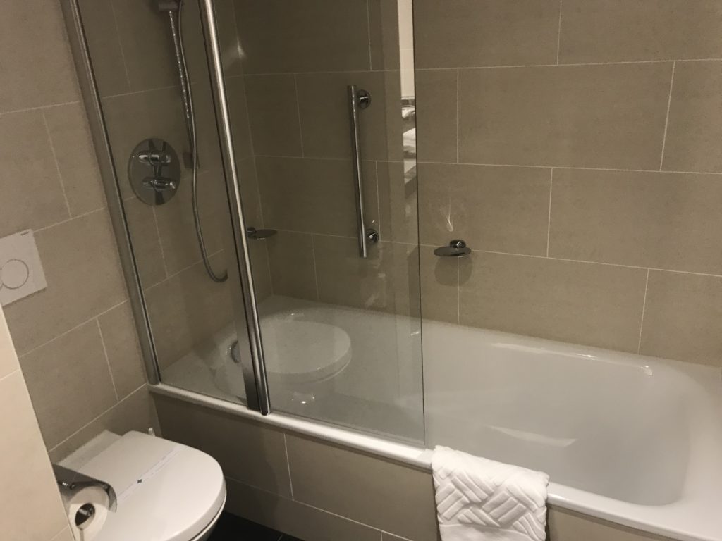 The bathroom wasn’t especially large, but it was entirely suitable for the three of us.