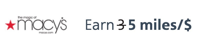 Macy’s is also offering 5 miles / $ as their base rate