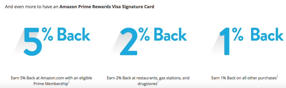 That’s right. Currently, Amazon Prime Members with an Amazon Prime Rewards Signature Visa Card can earn 5% cash back when they shop at Amazon.com using their Prime Membership.