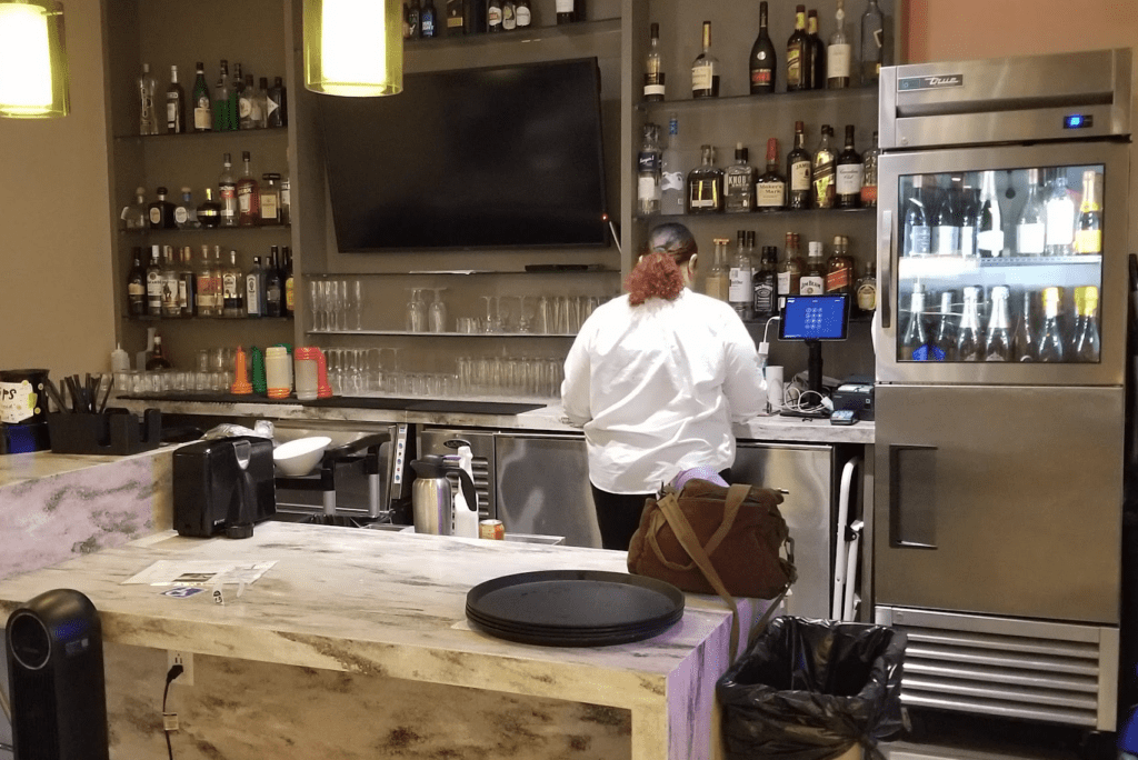 When you walk into the Escape Lounge Oakland, there is a small check-in area, where you will show your Priority Pass cards and boarding passes. That opens up into the lounge itself. There aren’t a ton of seating options, but it is definitely bigger than the Escape Lounge CVG, for example.
