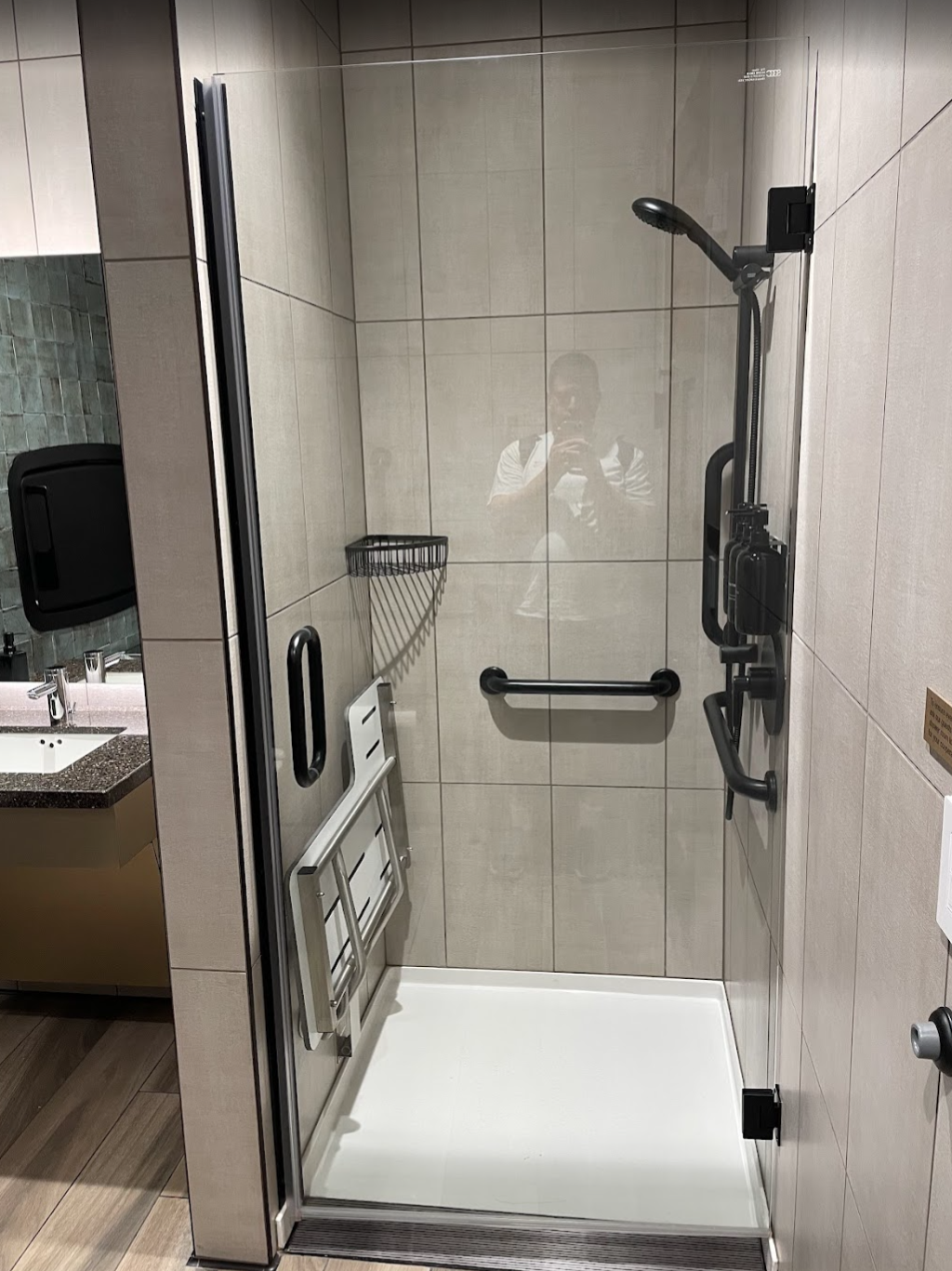 a shower with a mirror