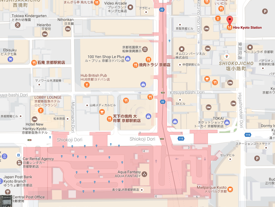 Facing Kyoto Station from the outside, you will find a FamilyMart to your left. Cross the street and walk along the road, you will find the restaurant in less than 5 minutes.