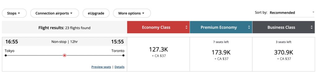 My only saving grace was that Air Canada itself flies from both Seoul and Tokyo. So I thought there might be a chance that they might be able to open up space on their own metal. The only possible spanner in the works was that it was showing an outrageous price for those flights on Air Canada’s website, so I wasn’t sure if that would work or not or if that was “saver” availability (whatever that means in 2023)