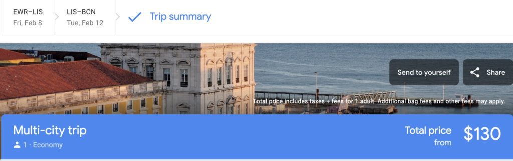 You can also include a stopover in Lisbon (and possibly Oporto, depending on the routing). Here’s an example with a stopover in Lisbon