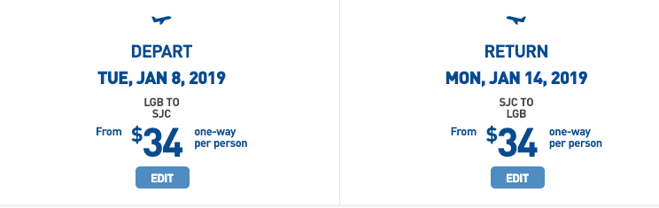 $34 sample fare from Long Beach to San Jose