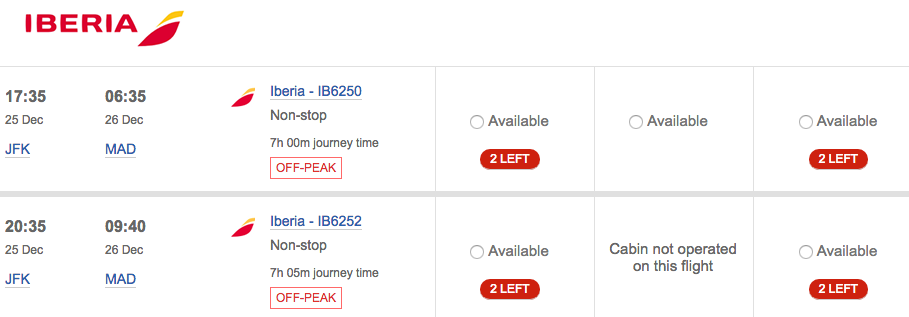 Iberia Plus prices awards differently during peak and off-peak season. Dates in red below are peak dates and the rest are off-peak dates. Unfortunately the summer months from mid-June to early September are considered peak season and therefore not included in this promotion. However, both Thanksgiving week and Christmas holiday are included in off-peak season and therefore the 25% discount will apply!