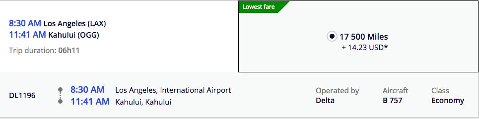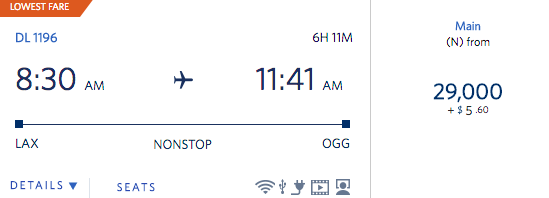 To give you an example, Delta charges 29,000 Skymiles for its nonstop flight from Los Angeles to Maui on May 8, 2019.