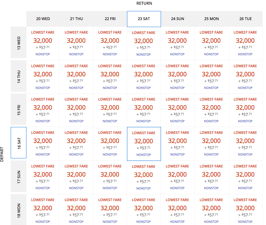- Main Cabin award fares starting at 32,000 miles round trip (plus taxes and fees);