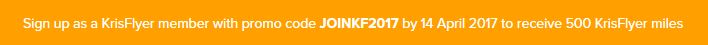 You never know when you might need more Singapore miles. So join KrisFlyer program online now and get the free 500 miles by using promo code JOINKF2017.