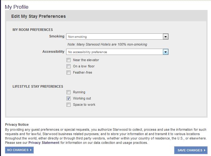 Once you’re there, scroll down to My Stay Preferences which will bring up the following screen