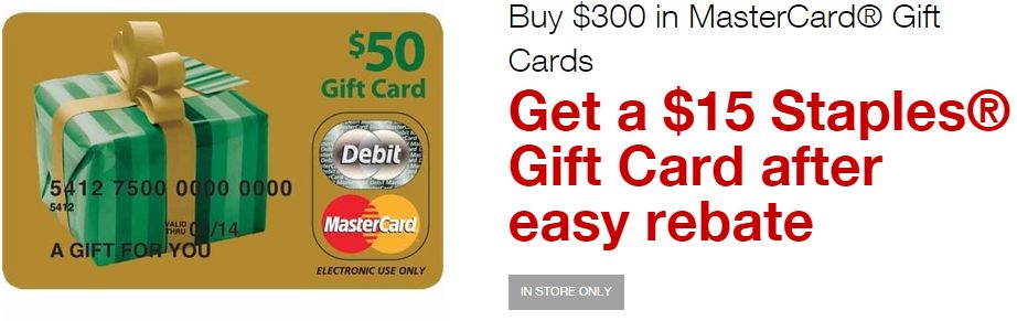 To follow along, if you buy $300 in Mastercard gift cards this week at Staples, you’ll get a $15 Staples gift card by Easy Rebate in the mail. It’s in next week’s weekly ad ( H/T: Frequent Miler)