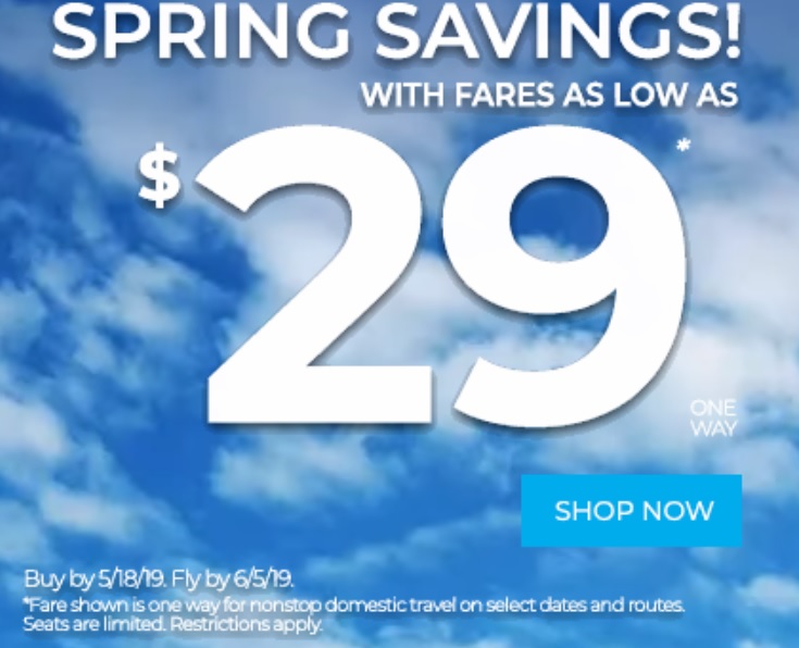 The Friends Fly promotion is not nationwide, but it is good on scores of routes in Frontier’s network. The full list of options is on the promotion page. The travel window is between now and June 12 for some routes, and June 18 through August 28 on others; 7-day advance purchase requirements are listed. While this promotion is good through the height of summer travel, there are more restrictions than normal, so read the terms and conditions on Frontier’s promotions page for all required information. This is a flash sale, so purchase membership in the Den and your tickets by May 19 (presumably 11:59 PM EST) to take full advantage.